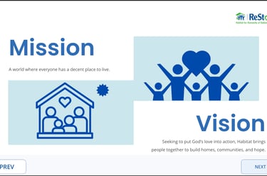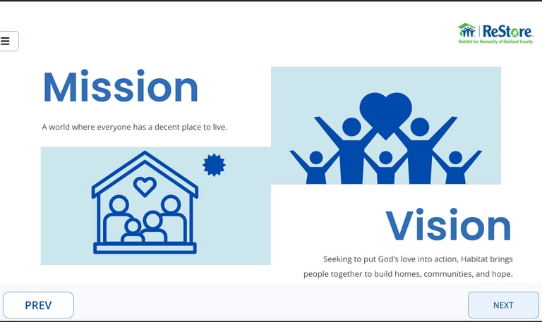 A scenario-based eLearning module designed to prepare new ReStore volunteers to safely handle donations, assist customers, and communicate effectively in a busy retail environment. Built in Articulate Storyline using interactive scenarios and guided feedback.