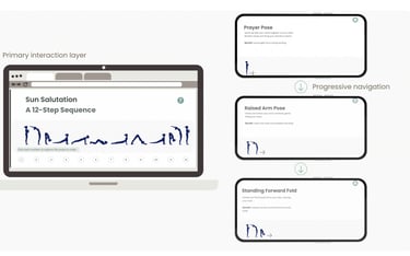 The module centers on the Surya Namaskar (Sun Salutation) sequence, presented through an interactive 12-step exploration that allows learners to move through poses at their own pace. Each pose includes clear instructions, benefits, and optional audio guidance, supporting both novice and experienced learners.