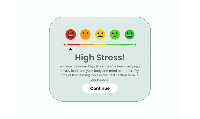 The interaction was designed to support calm exploration and body awareness while maintaining simple navigation. Progressive disclosure prevents cognitive overload and encourages reflective engagement.